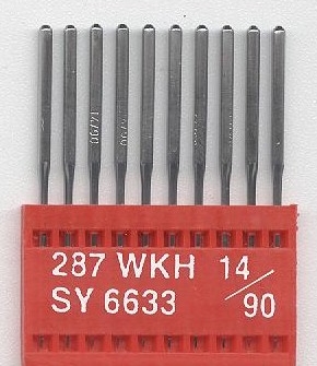 Vyšívacia ihla pre priemyslové stroje -Triumph 287 WKH 14/90 ocelová, s krátkym hrotom (WKH), určená pre vyšívanie materiálov s nerovnomerným povrchom (čapice, koža), doporučená hrúbka nite 120d/2 a 150d/2.