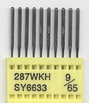 Vyšívacia ihla pre priemyslové stroje -Triumph 287 WKH 9/65 ocelová, s krátkym hrotom (WKH), určená pre vyšívanie materiálov s nerovnomerným povrchom (čapice, koža), doporučená hrúbka nite 75d/2.