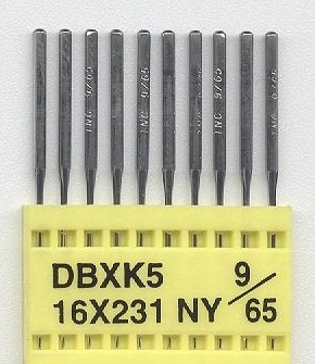 Vyšívacia ihla pre priemyslové stroje -Triumph DBxK5 NY 9/65 ocelová, so špicatým hrotom, určená pre vyšívanie klasických tkaných materiálov, doporučená hrúbka nite 75d/2. Túto ihlu použijeme na menšie písmená či jemnejšie kontúry.
