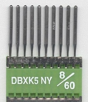 Vyšívacia ihla pre priemyslové stroje -Triumph DBxK5 NY CM 8/60 keramická, so štandardným hrotom, určená pre vyšívanie syntetických a pogumovaných materiálov ako sú napríklad batohy, doporučená hrúbka nite 75d/2.